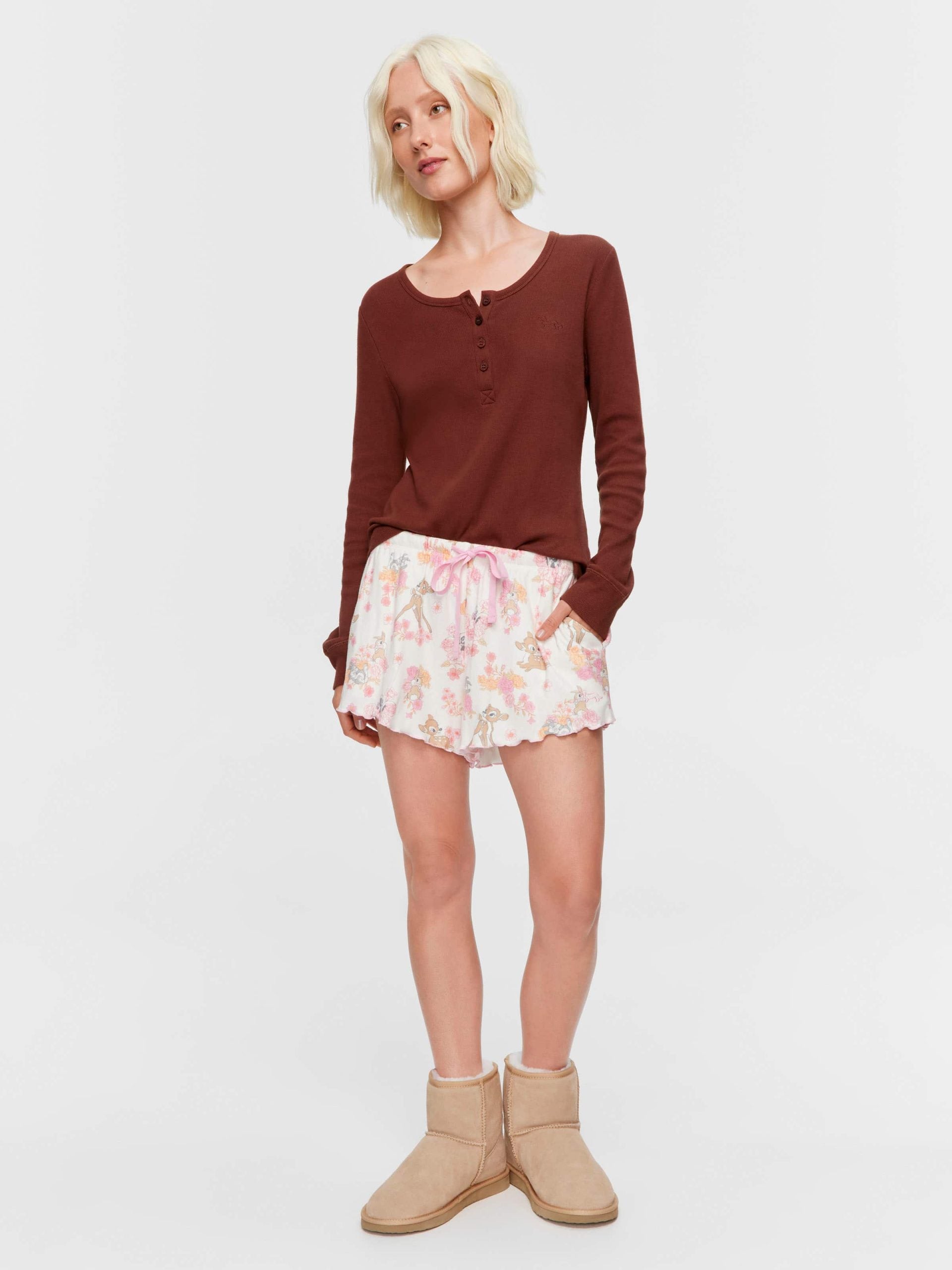 Youll be fawning over these womens mini short. Featuring an all over floral Bambi and Thumper print, these make the perfect pair to wear for all your Disney marathons with the matching pointelle tee.