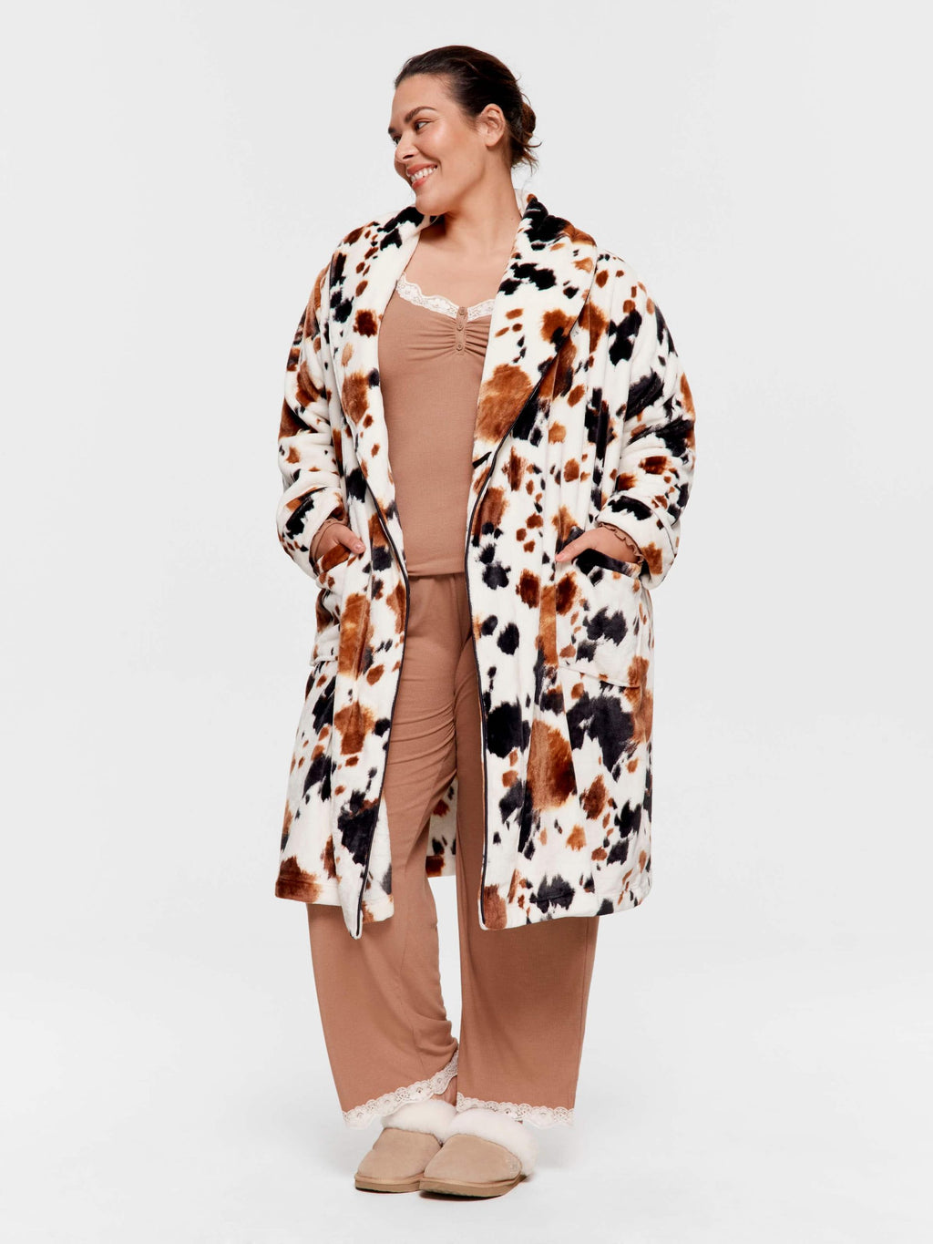Rug up this winter with our cow print fleece gown. Perfect for layering, this statement gown is comfy, cosy and oh so country.